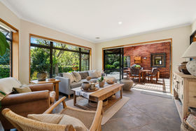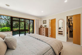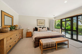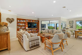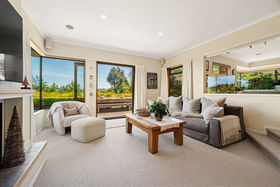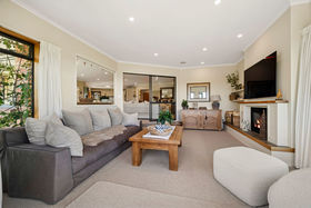 A separate lounge/media room can be closed off from the main living space and features a gas fire for warmth and ambience. Accessed from the main living area, a sun-filled conservatory flows to a covered and sheltered entertaining space. The large kitchen is designed for both style and function, featuring Caesarstone benchtops, induction hob, hot water tap and double ovens.