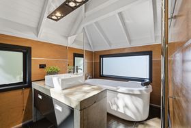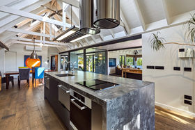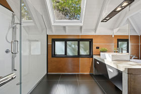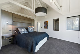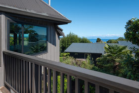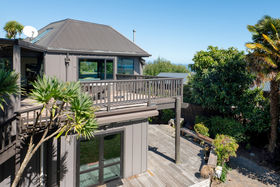 Upstairs is the main hub, with a beautifully appointed new kitchen flowing into open-plan living and dining, and out to an elevated deck capturing stunning views. This level also includes an additional bedroom with ensuite, along with a generous master suite complete with dressing room and ensuite.